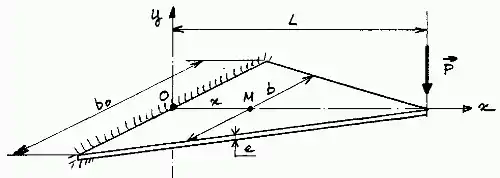 Si bo est la largeur de cette lame au niveau de l'encastrement et L sa longueur, la largeur de la lame au point M d'abscisse x s'écrit :