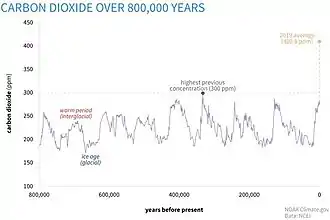 - (en-US) Rebecca Lindsey, « Climate Change: Atmospheric Carbon Dioxide », NOAA, (ISSN 0362-4331, lire en ligne)