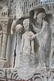 Réalisé en pierre de liais probablement peinte en couleurs, il comporte trois parties, la Vierge en majesté, l’Annonciation et le Baptême du Christ par Saint Jean-Baptiste[2].