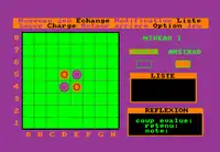 Sur Oric 1/Atmos, le plateau de jeu occupe la grande majorité de l'écran, noir sur fond bleu clair ; à sa droite, différentes indications sont fournies : à qui est le tour de jouer, quel est le niveau de jeu et éventuellement un conseil donné par le programme. Sur Amstrad CPC, on peut y voir le plateau de jeu sur la moitié gauche[6],[8], vert sur fond violet, les pions étant de couleur orange et violette. Ces couleurs peuvent être changées par l'utilisateur à son gré[7]. Le menu des options se situe en haut de l'écran[6],[8] ; sur la droite, on trouve le niveau de jeu utilisé par l'ordinateur[8], la liste des derniers coups joués ainsi que le champ où entrer le prochain coup[8] et enfin un cadre où sont évalués les différents coups possibles de l'ordinateur[1],[8].