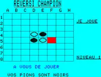 Reversi Champion est une adaptation du jeu de société Othello en jeu vidéo. Jouable à un ou à deux joueurs et édité et distribué par Loriciels, il est mis sur le marché en 1984 pour les ordinateurs Oric 1, Atmos et Sega SC-3000[Note 1] et en février 1986 pour la version Amstrad CPC.