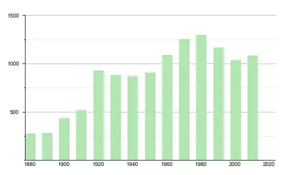| 1990 | 1 166 | ▼ −10,17 % | |