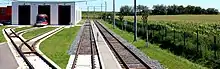 Le terminus de Rhônexpress se trouve sur la voie située au premier plan, avant celle du tramway urbain.