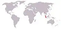 L'espèce ne subsiste plus que dans le Parc national d'Ujung Kulon à l'ouest de Java, Les sous-espèces indo-birmanes et vietnamiennes ont disparu en 1925 et 2010 respectivement. |