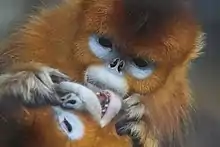Le Rhinopithèque de Roxellane[1],[2] (Rhinopithecus roxellana), aussi appelé singe doré, est une espèce qui fait partie des Primates. Ce singe est un rhinopithèque de la famille des Cercopithecidae, couvert d’une belle fourrure rousse, avec une face bleutée et un petit nez retroussé. Il vit dans les forêts de montagne de Chine du Sud-Ouest, le long du plateau tibétain.