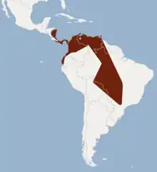 L'espèce est présente dans le sud du Honduras, le Nicaragua, le Costa Rica, le Panama, le nord et le centre de la Colombie, l'ouest de l'Équateur, le Venezuela, les états brésiliens du Mato Grosso, du Pará et de l'Amazonas, le nord-est de la Bolivie, l'ouest de Guyana et sur l'île de Trinidad[2].