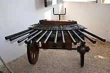 Un ribaudequin est une ancienne pièce d'artillerie du XVe siècle sur affût composé de petits canons montés en parallèle qui sont allumés simultanément[1].