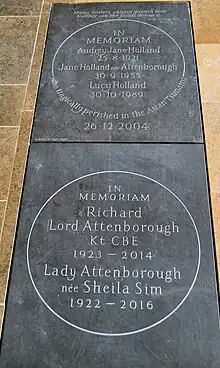 - (en) « Richard Attenborough's ashes to be interred with daughter », Times of India,