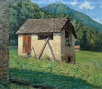 - Alpage du Tessin avec une ancienne étable. 1948 (40cm X 46cm). Huile sur toile.