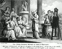 Une peinture plus inhabituelle est la composition que Samuel fit à l'aide de portraits de femmes britanniques indépendantes bien connues de son temps. Il ne les aurait pas identifiées, mais une gravure postérieure révéla qu'il les avait choisies pour leurs réalisations et leur aptitude intellectuelle[7]. Samuel choisit des femmes éminentes de divers domaines, inspiré par l'idée des neuf muses de la mythologie. Il choisit pour poétesse Anna Laetitia Barbauld, et Elizabeth Carter était l'érudite. Angelica Kauffman était la seule cofondatrice de la Royal Academy ; Elizabeth Griffith (en), une dramaturge ; Charlotte Lennox, une écrivaine ; et Catharine Macaulay, une historienne. Les trois autres muses étaient une personnalité influente, Elizabeth Montagu ; une dramaturge et moraliste, Hannah More ; et la chanteuse Elizabeth Ann Linley[2].