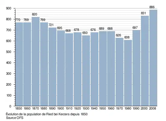 Le graphique suivant résume l'évolution de la population de Ried bei Kerzers entre 1850 et 2008 (incluant les communes fusionnées ultérieurement)[3] :