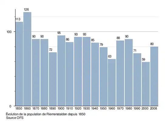 Le graphique suivant résume l'évolution de la population de Riemenstalden entre 1850 et 2008[3] :