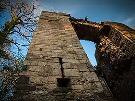 ![]() ![]() ![]() L'église Saint-Melaine, les ruines du château et la mairie. |