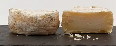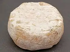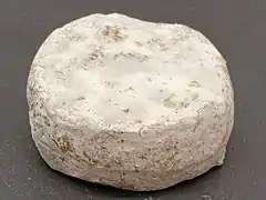Cette appellation est attachée traditionnellement à un fromage au lait cru de chèvre, à pâte molle à croûte naturelle, rond, de couleur ivoire à bleue sur toute la surface.
