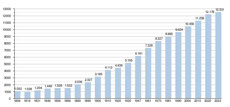 - Source : DGS - Remarque: 1806 jusqu'à 1981=recensement; depuis 1990=nombre d'habitants chaque 1er janvier[3]