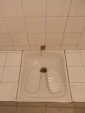 Dans de nombreuses régions d'Asie, les gens utilisent traditionnellement les toilettes en position accroupie. Ceci s'applique à la défécation et à la miction chez les hommes et les femmes. Par conséquent, les maisons et les toilettes publiques ont des toilettes « à la turque », avec la cuvette des toilettes incorporée dans le sol. Elles présentent l'avantage de ne pas nécessiter de siège de toilette supplémentaire et d'être plus pratique pour les cultures dans lesquelles les personnes utilisent de l'eau pour laver leurs organes génitaux en place du papier hygiénique. Cependant, les toilettes de style occidental montées à hauteur des sièges et dotées d'un siège en plastique sont également devenues populaires. Beaucoup de toilettes publiques ont des toilettes à la fois accroupies et assises.