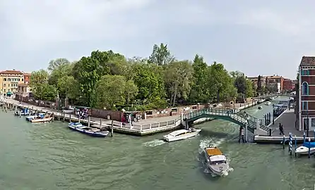 Ponte Santa Chiara (o del Monastero) reliant les Fondamenta Santa Chiara (Piazzale Roma) aux Giardini Papadopoli [1]