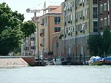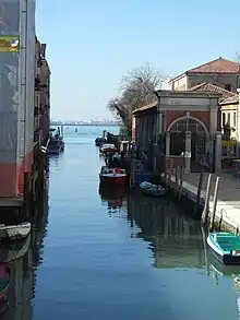 Rio di S. Alvise, vue vers l'ouest du Ponte Bonaventura et derrière, Porto Marghera