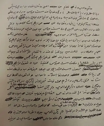 On considère généralement que les règles de cette écriture ont été fixées par Mumtaz Bey[2] (1810-1872), sous le règne du sultan Abdul Majeed Khan, en 1863. La définition canonique du style est cependant due à Mehmed Izzet Efendi (1841- 1904), dont la version est la plus répandue.