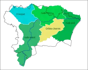 Le cours de l'Aude peut être scindé en trois unités distinctes[2] :