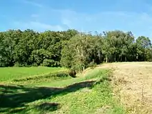 L'occupation des sols de la commune, telle qu'elle ressort de la base de données européenne d’occupation biophysique des sols Corine Land Cover (CLC), est marquée par l'importance des territoires agricoles (47 % en 2018), néanmoins en diminution par rapport à 1990 (68,7 %). La répartition détaillée en 2018 est la suivante : terres arables (47 %), eaux continentales[Note 3] (22,3 %), forêts (19,8 %), zones urbanisées (9,7 %), zones industrielles ou commerciales et réseaux de communication (1,1 %)[23]. L'évolution de l’occupation des sols de la commune et de ses infrastructures peut être observée sur les différentes représentations cartographiques du territoire : la carte de Cassini (XVIIIe siècle), la carte d'état-major (1820-1866) et les cartes ou photos aériennes de l'IGN pour la période actuelle (1950 à aujourd'hui)[Carte 1].
