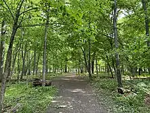Un sentier dans la réserve forestière de Thatcher Woods à River Forest, Illinois