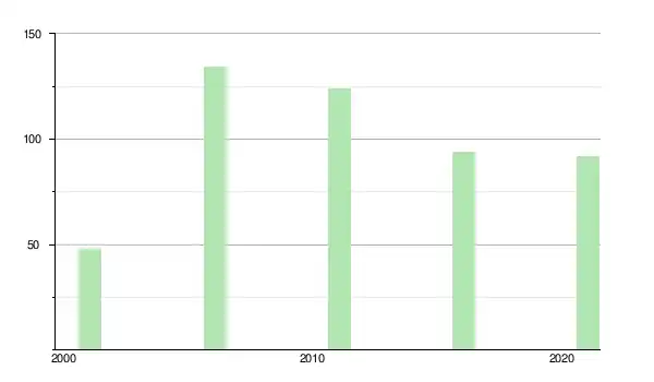 Le recensement de 2006 y dénombre 134 habitants, 179,2 % de plus qu'en 2001.