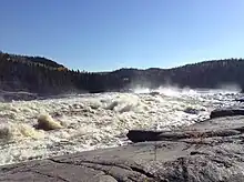 Les chutes et les rapides constituent les principaux attraits de la rivière. Avec un débit moyen de 298 mètres cubes par seconde, sa largeur, qui peut être que de 15 mètres en certains endroits[19], associée à la décente en altitude, donne lieu à plusieurs chutes et rapides qui atteignent parfois plusieurs centaines de mètres de long.