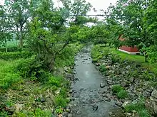 - 2,1 km vers le nord-est, en recueillant les eaux du ruisseau Guay (venant du nord-ouest), jusqu'au chemin du rang Saint-Jacques ;