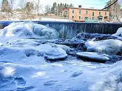 - 4,1 km vers le sud-ouest, en recueillant le ruisseau Péloquin, en passant autour de l'île Rouillard, en traversant le barrage La Poudrière, en traversant les rapides de la Poudrière et le barrage Watopeka, en traversant la partie sud de la ville de Windsor.