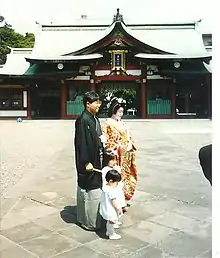 Dans la cérémonie du mariage shinto au Japon, la mariée porte un Shiromuku.