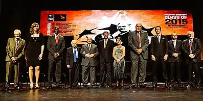 Robert Blanchard avec Horacio Muratore (Président de la FIBA de 2014 à 2019) en 2015 lors de la cérémonie Hall of Fame de la FIBA | |