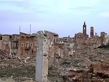Deux semaines après la 1re bataille de Belchite, Merriman fait visiter les ruines de la ville à Marion, sa jeune femme. Un demi-siècle plus tard, Marion décrit dans son livre de souvenirs (voir le chapitre "Bibliographie") cette visite, qui précède son départ pour les USA : Robert l’envoie faire une tournée de collecte de fonds en faveur de la République Espagnole (en fait il la met à l’abri) . "Nous marchons dans les ruines, et pendant que Bob m’explique le déroulement de la bataille, les ombres s’allongent dans les champs des alentours. Ici est tombé un de nos meilleurs mitrailleurs ; à côté de ce mur Burt a été tué ; ici est la tombe de Danny; ici est tombé Sidney, la balle d’un sniper l’a touché entre les yeux ; ici a été blessé Steve Nelson. Certes nos pertes étaient peu nombreuses, mais il s’agissait des meilleurs et des plus aimés de nos hommes. Nous longeons une petite usine, et d’énorme rats d’égout se sauvent dans un caniveau près de la route. Ils sont aussi gros que des chats. Bien que 2 semaines soient passées, l’odeur de chair brûlée flotte encore dans l’air, écœurante dans la fraîcheur du soir. Bien qu’ils soient beaucoup plus nombreux que nous, les fascistes ne se sont pas occupés de leurs cadavres. Ils ont laissé des centaines de corps pourrissants entassés dans plusieurs bâtiments. Nous parcourons les rues jonchées de débris, et l’impression de désolation et de mort augmente. Des chats abandonnés errent, affamés, et des chiens hargneux hurlent et se battent au fond des rues noires et étroites. La pleine lune brille quand nous arrivons à la cathédrale, au centre de la ville. Sur ses marches usées traînent un drapeau phalangiste rouge et blanc, et plus bas une soutane, peut-être perdue là par un prêtre en fuite. Sur la place, il y a assez de lumière pour que Bob et moi puissions lire les affiches encore collées sur les murs en ruines : elles décrivent les horreurs du marxisme, et non celles de la guerre déclenchée par un petit groupe de fascistes. Je remarque des affiches qui enjoignent une conduite modeste aux jeunes femmes : elles doivent porter des jupes et des manches longues, car c’est la femme qui incite l’homme au péché. Il n’y a pas d’affiches promettant la démocratie."[16]".