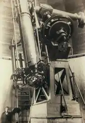 Le moteur d'entrainement, à l'époque mécanique, est constitué d'un simple poids sur poulie, la poulie étant reliée à l'axe équatorial de rotation. Un trou au milieu du pilier de la lunette permettait au poids de descendre jusqu'à l'étage inférieur et d'avoir une grande durée d'autonomie pour l'observation.