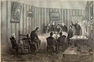 Le président Lincoln, entouré de médecins et d'officiers sur son lit de mort