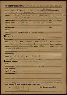 Formulaire d'enregistrement de Robert Rolin Jacquemyns en tant que prisonnier dans le camp de concentration nazi de Dachau