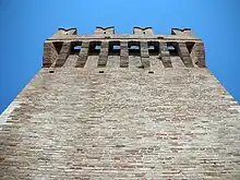 La base révèle une construction plus ancienne par rapport à la partie supérieure, qui se termine par des merlons en queue d'aronde (à la ghibellina).