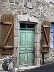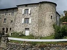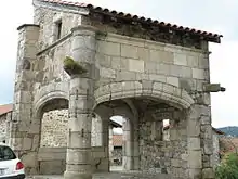 Au milieu du bourg se dresse le porche[27] qui servit de prévôté à la baronnie de Roche-en-Régnier. L’édifice, qui porte dans un écusson la date de 1649, se compose d’une sorte de loggia supportée par deux arcs très surbaissés et une voûte à nervures ; les arcs s’appuient à un des angles sur un pilier circulaire orné d’une fausse gargouille représentant un buste de femme le visage tourné vers le sol.