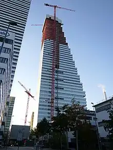 La démolition des anciens bâtiments sur le site de Roche commence en . À la mi-, douze étages et 58 mètres de hauteur sont atteints[6]. Vers la fin , la hauteur de la tour passe à 90 mètres[7]. En , elle dépasse les 160 mètres[4].