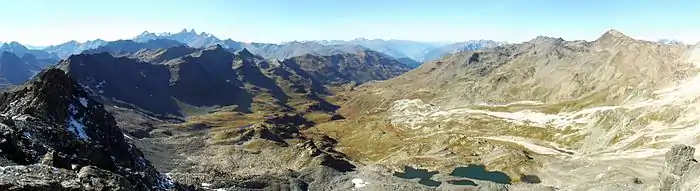 Culminant à 2 950 mètres d'altitude, la montagne est un nœud orographique d'où partent trois arêtes. L'arête sud, qui appartient à la ligne de partage des eaux entre la vallée Étroite et celle de la Clarée, mène au col des Muandes et, après le rocher de la Grande Tempête, aboutit au col de l'Échelle. L'arête ouest, qui sépare la Clarée de la Maurienne, se prolonge vers le col de la Plagnette et le col des Rochilles, puis vers la pointe des Cerces. L'arête nord-est enfin descend au col de Valmeinier et se prolonge en direction du mont Thabor.