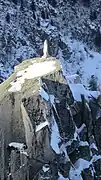 Le rocher ruiniforme est couronné d'une statue de la Madone[4]. Celle-ci est un don de 1977. Une plaque explicative a comme inscription[5] :