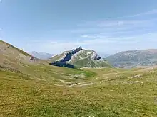 Vue depuis le nord-est des roches Merles dominant l'alpage de la Sausse. | |||