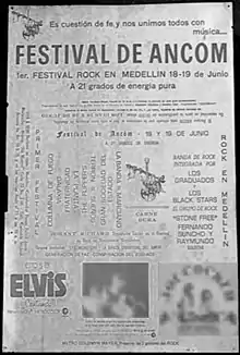 L’événement le plus important de cette période, qui reflète l’ampleur de cette mode, est le Concierto de Conciertos Bogotá en Armonía, tenu à[El Campín en septembre 1988. La même année, la réponse colombienne à ce phénomène devient visible[17]. Le groupe en ligne de mire dans ce mouvement est Compañía Ilimitada qui, avec l'aide d'Andrew Loog Oldham, devient le porte-drapeau du pop rock en Colombie. L'intérêt croissant pour le rock permet également au label CBS Records de promouvoir des groupes locaux, ce qui se traduit par l'enregistrement de nouveaux groupes venant de tout le pays entre 1987 et 1988. Cependant, les radios, télévisions et concerts de masse trouvent toujours portes closes pour les groupes locaux autres que Compañía Ilimitada[18].