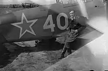 Fin , il effectue ses premières missions sur le front de l'Est, en protection de bombardiers et en chasse libre sur Yak-9.