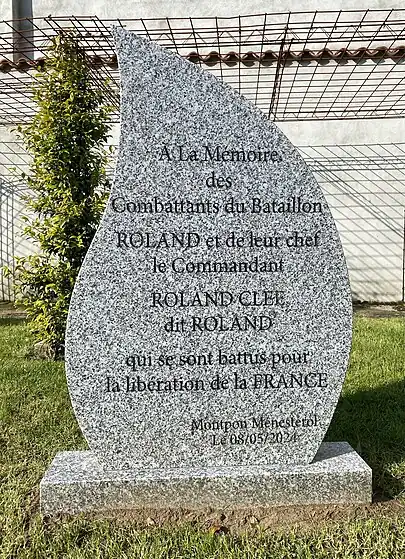 Enfin, le 30 avril 1945, l’opération Jupiter visant à libérer l’île d’Oléron est lancée[15]. Le bataillon Roland débarque dans la première vague d’assaut. L’adjudant Gaston Houpert et le soldat Sylvain Cassou sont parmi les premiers à tomber au combat. Le 1er mai 1945, un 3e soldat du bataillon, Marcel Normandin, est fauché à son tour. Dans l’après-midi, la garnison allemande se rend. L’ensemble du territoire français est désormais libéré.