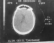 Oberson R. : Nous émiscannons... ils émiscannent. Editorial in Médecine et Hygiène (Genève) 35, 1977 ; p. 2467-2468. À propos du premier CT-scanner corps entier de Suisse[3].