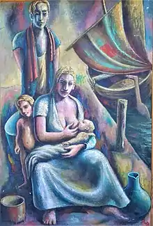 Ses sujets sont l'amour maternel et la mère nourricière aux seins généreux, l'homme qui médite sous la forme d'un christ, d'un bouddha ou d'un rabbin, les paysages couverts d'un ciel tourmenté annonciateur d'évènement important, les natures mortes et des portraits réalistes brossés avec vigueur.