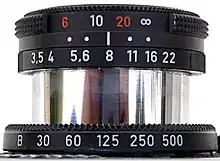 - Posemètre utilisant une cellule au sélénium, pas de pile.