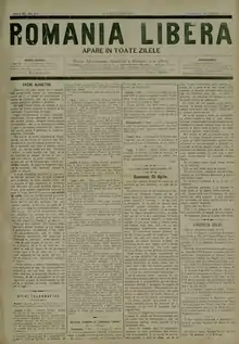 România liberă (" litt. Free Romania ' ") est un quotidien roumain fondé en 1943 et actuellement basé à Bucarest[1]. Un journal du même nom a également existé entre 1877 et 1888 [2],[3].