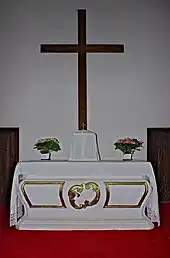 Le mur nord du bras du transept est orné de fresques. On y voit une rangée de personnes qui semblent être à table.